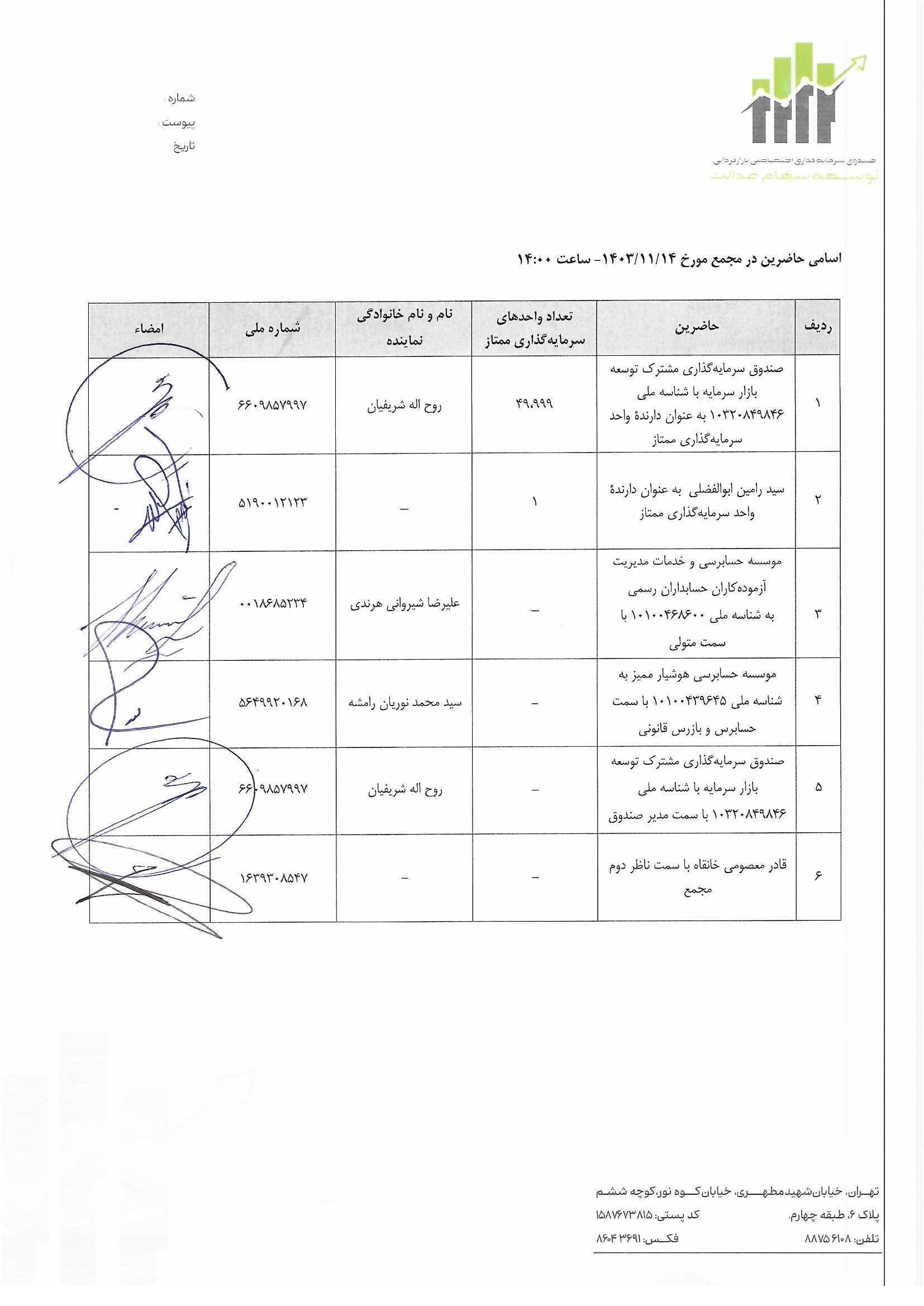 لیست حاضرین مجمع مورخ ۱۴۰۴/۰۴/۳۰ ساعت ۱۴